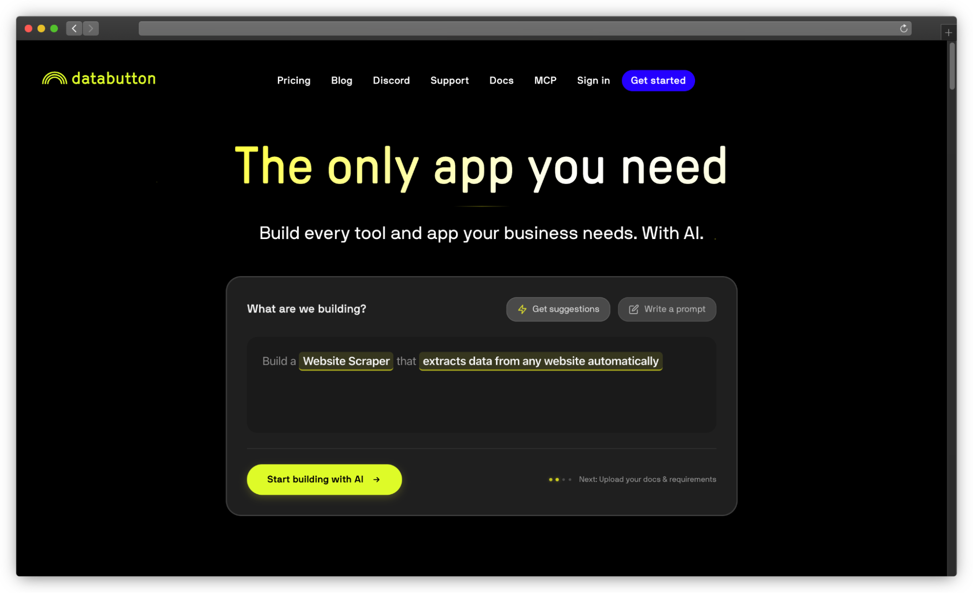 What it does: AI app generator with visual UI builder, focuses on internal tools, dashboards, and admin panels with database integrations